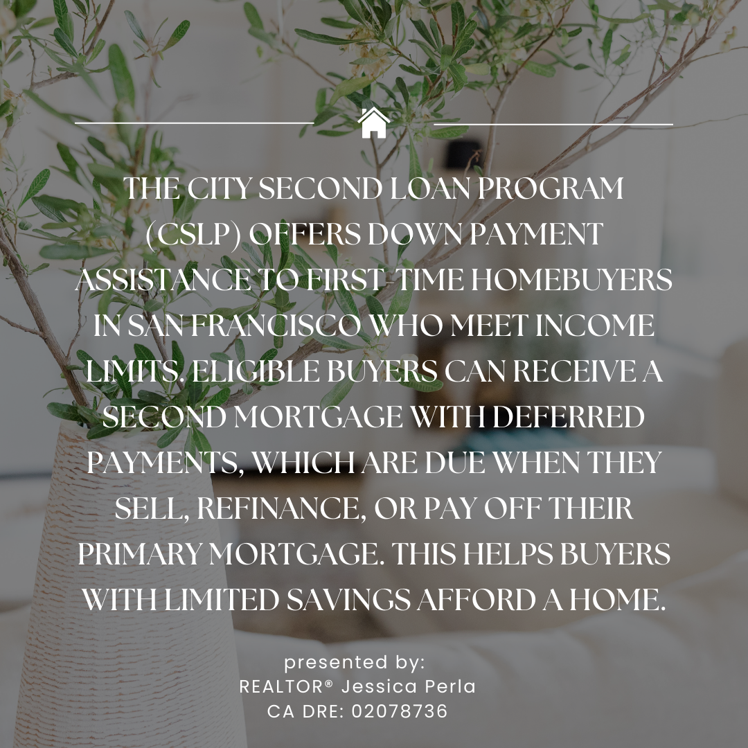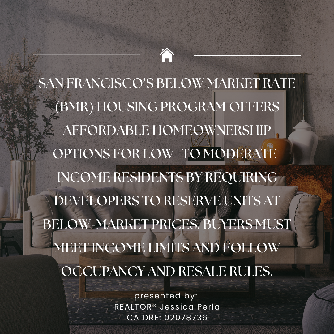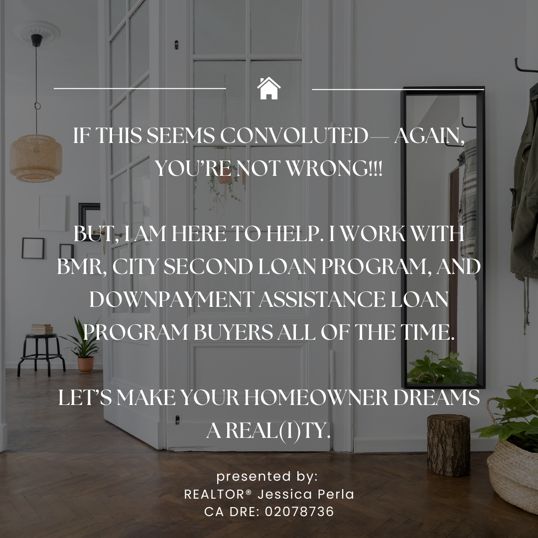 In San Francisco, there are awesome affordability programs for homebuyers: – Below Market Rate – City Second Loan Program – Downpayment Assistance Loan Program Get in touch with me today for more information!
