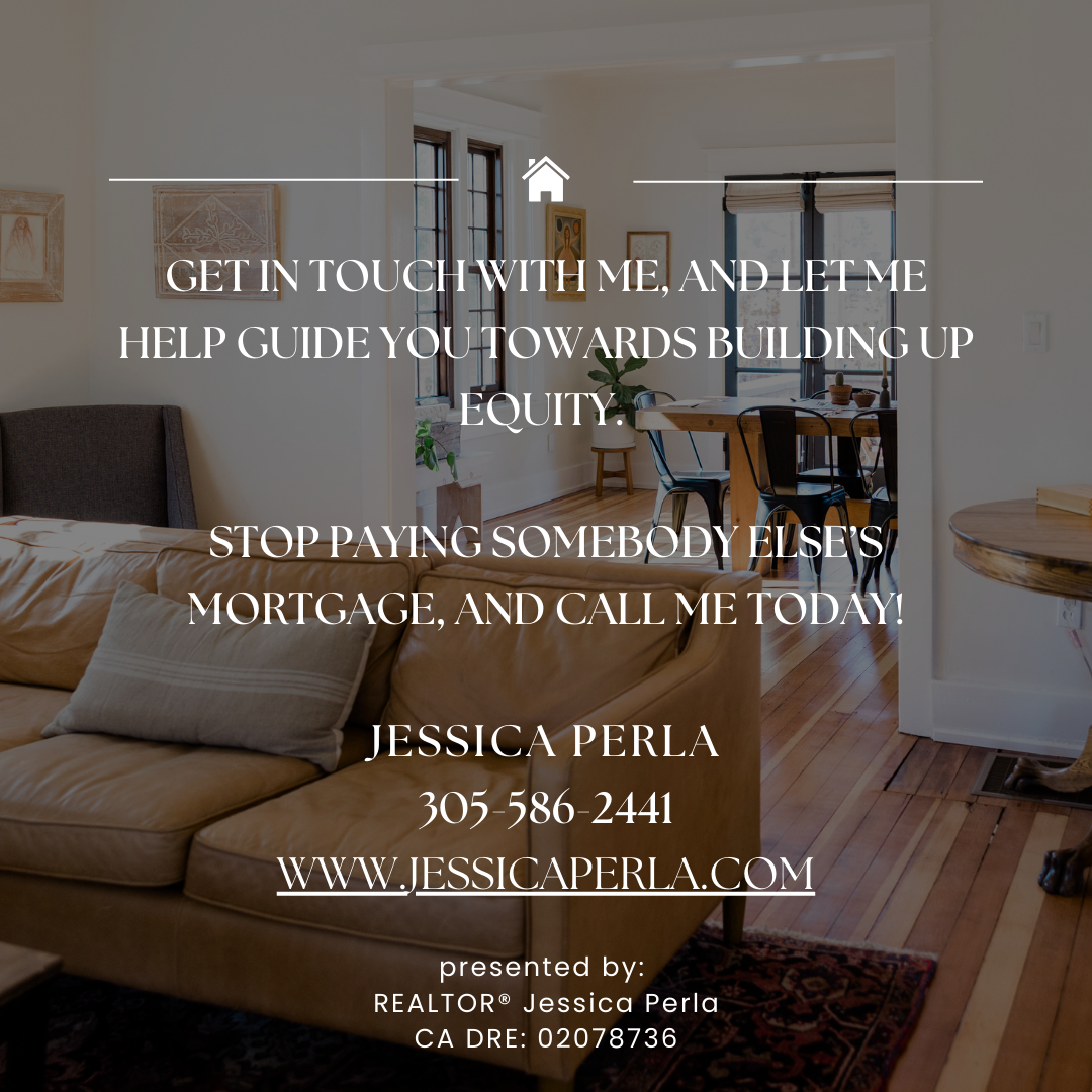 I’d love to help you navigate your way towards your first home. REALTOR® Jessica Perla CA DRE: 02078736 Coldwell Banker Realty jessica.perla@cbnorcal.com 305-586-2441